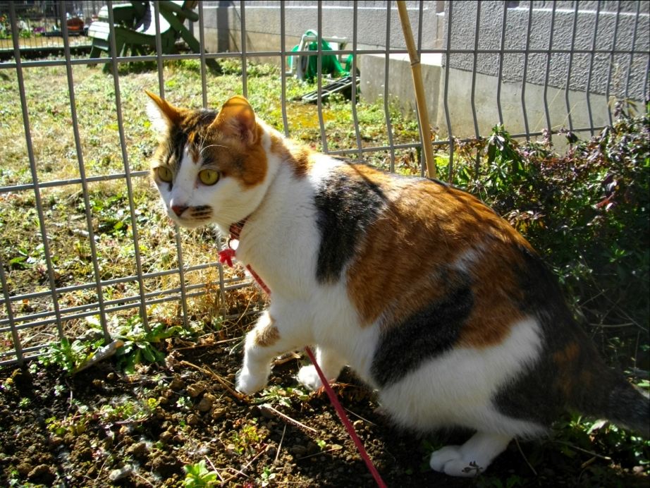 天気が良いのでタマも庭に出たいと訴えがあって、