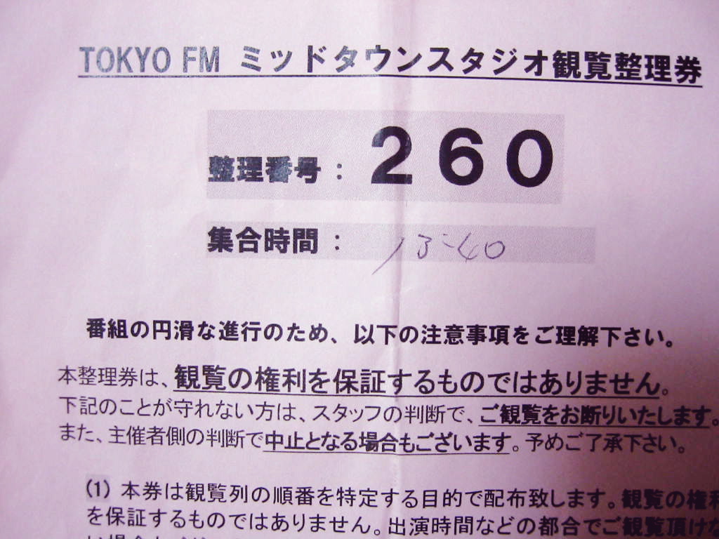 多分整理券は300枚ほど配られて、1番から順に前の方に詰めて行って、