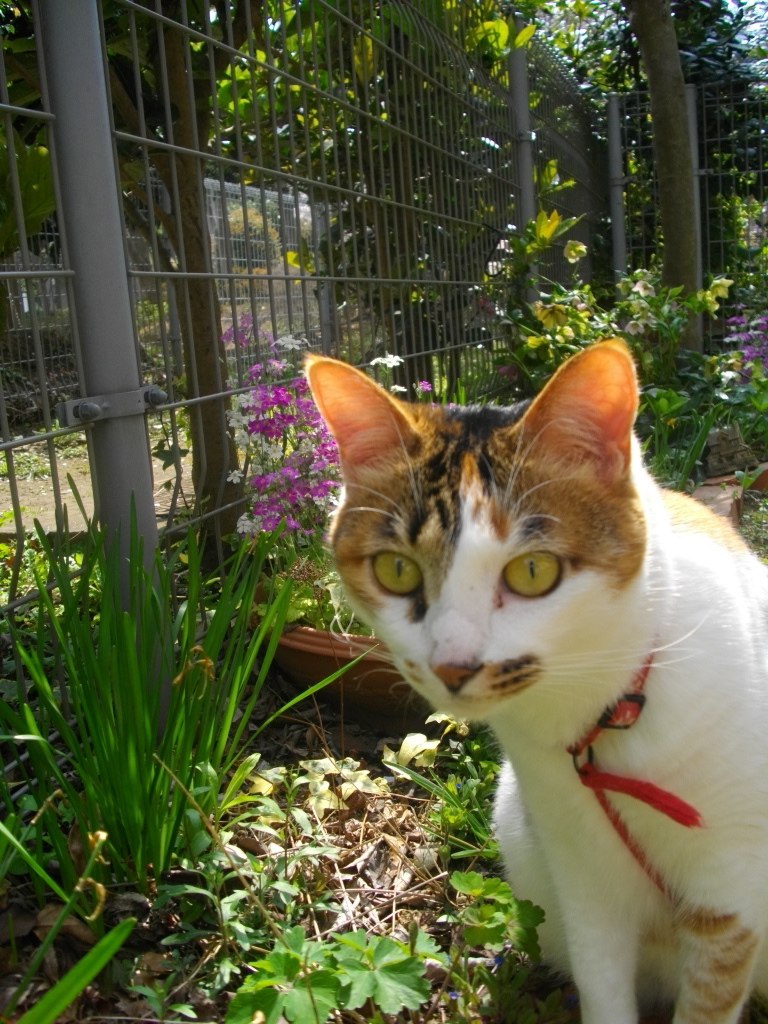 庭でお散歩。