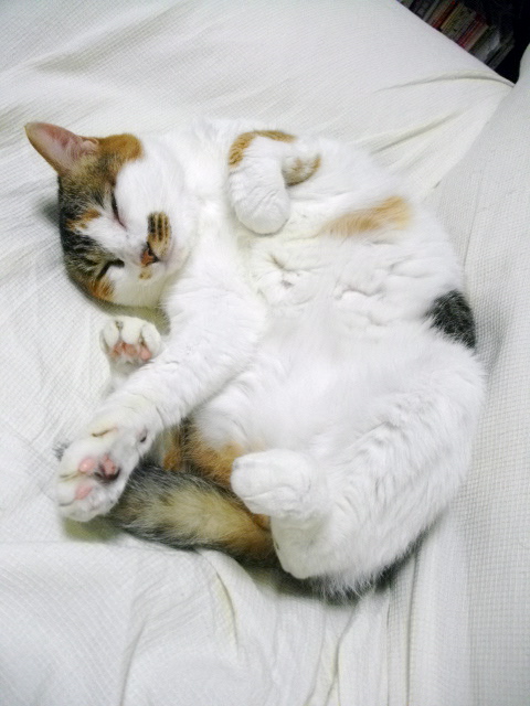 寝る時は左手が伸びます。