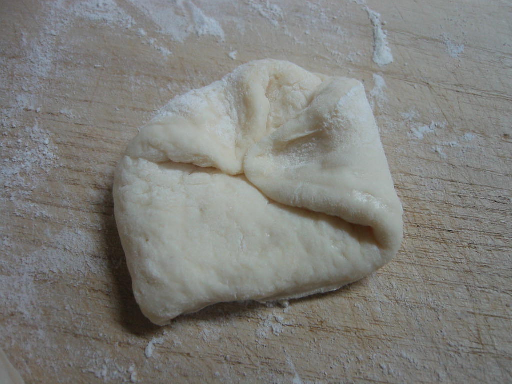 肉まんの上みたいな?最後に口を閉じてこちら側を下に置く。